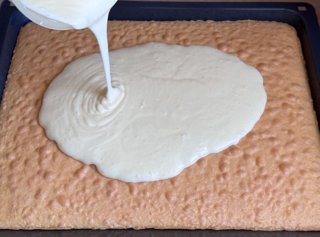 Rührteig als Basis für den Erdbeerkuchen vom Blech mit Vanillepudding
