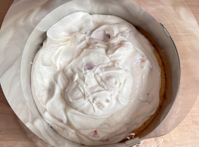 - Ringhilfe: Stelle einen Tortenring um den Biskuitboden, bevor du mit dem Schichten beginnst. Der sorgt dafür, dass alles in Form bleibt.