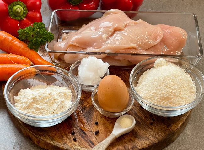 Diese Zutaten brauchst du für meine Kokos-Hähnchenschnitzel:
