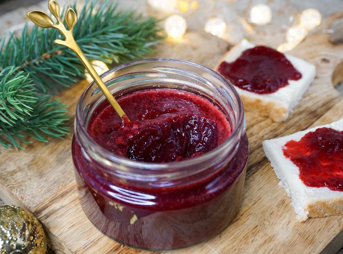 - Fülle die heiße Marmelade sofort in die vorbereiteten Gläser und verschließe sie fest. Lass die Gläser komplett abkühlen und verziere sie danach nach Lust und Laune weihnachtlich.